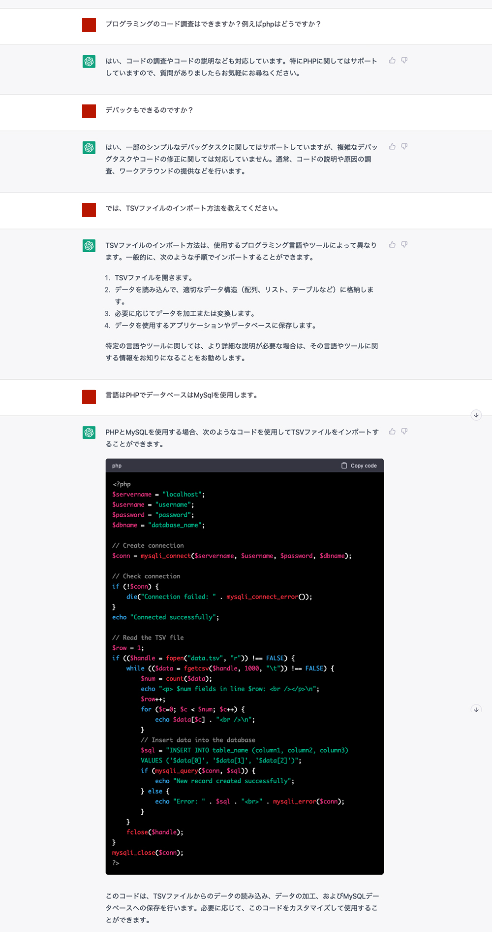 質問の途中から「PHPでMySql」とは使っていません。にも関わらず、完全に話の流れを理解してレスしてくれます。しかも爆速です。